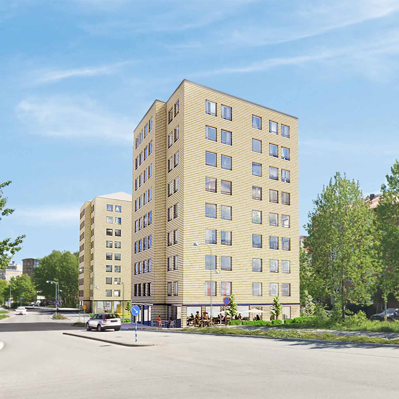 Att vara en del i förverkligandet av en långsiktig vision är ett ansvarsfullt åtagande. Fortis är tillsammans med Greendoor engagerade i stadstutvecklingsprojektet Fokus Skärholmen där över 4000 bostäder skapas med ett tydligt fokus på social hållbarhet. Vi bidrar med vår kompetens inom detaljplanering med ambitionen att skapa en trygg och inkluderande miljö. Vi planerar att använda våra coworking- café och utegymskoncept för att göra fastigheten levande och ännu mer användbar för området och våra hyresgäster. Taket utrustas med solpanelceller för att minska fastighetens klimatavtryck.